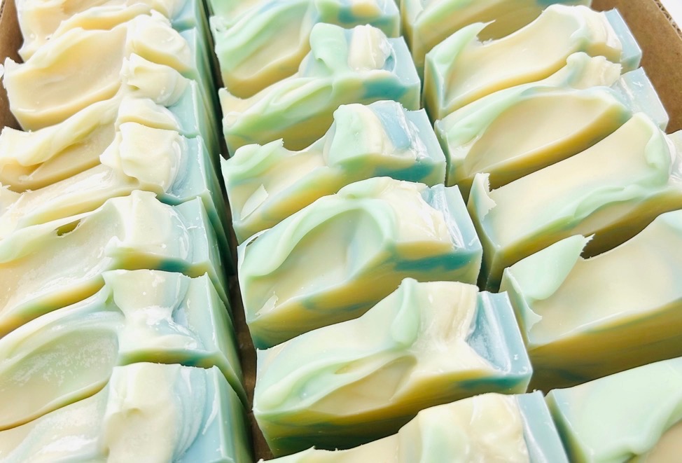 Ingredients: OLIVE OIL, COCONUT OIL, SPRING WATER, SODIUM HYDROXIDE, CASTOR OIL, SHEA BUTTER, FRAGRANCE OIL, MICA.