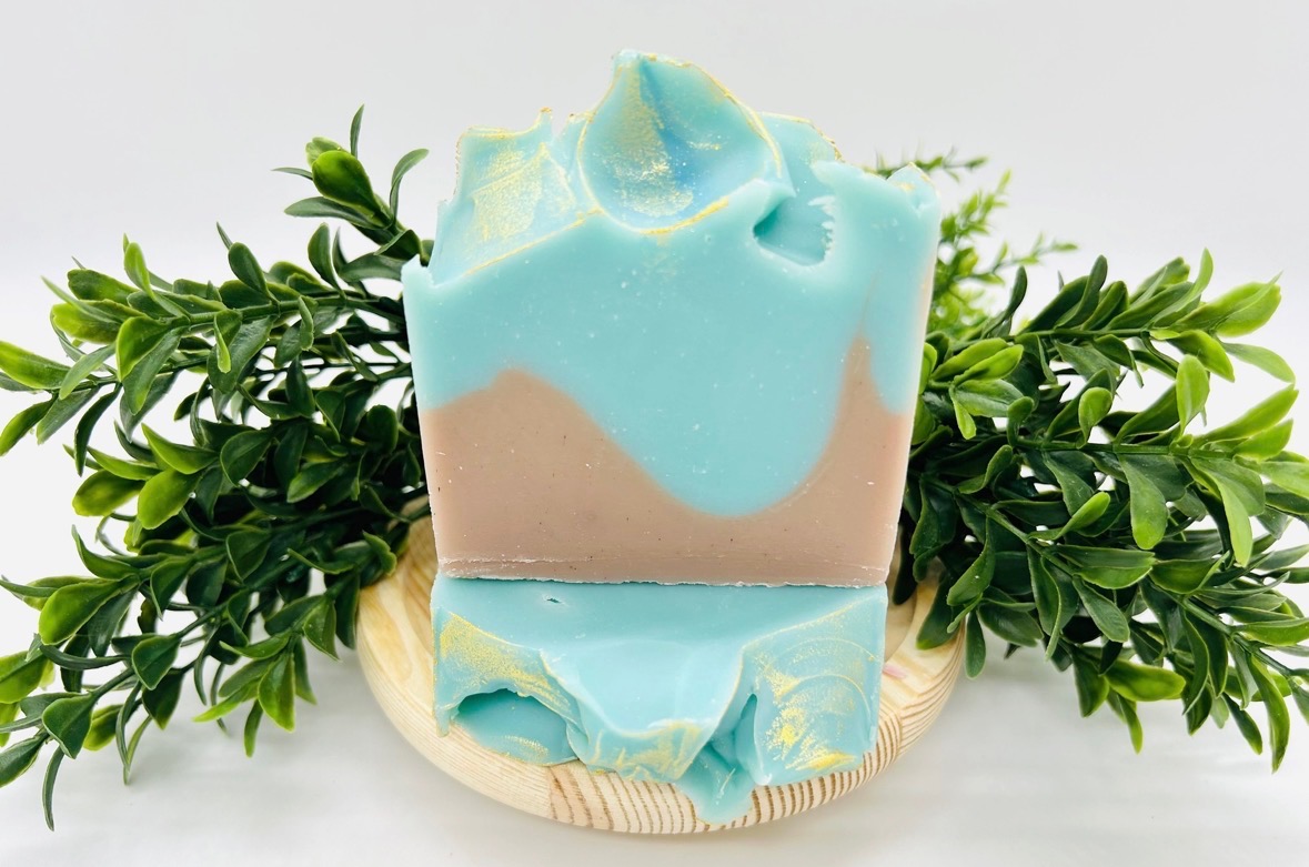 Ingredients: OLIVE OIL, COCONUT OIL, SPRING WATER, SODIUM HYDROXIDE, CASTOR OIL, SHEA BUTTER, FRAGRANCE OIL, MICA, CORN DERRIVED ECO-GLITTER,