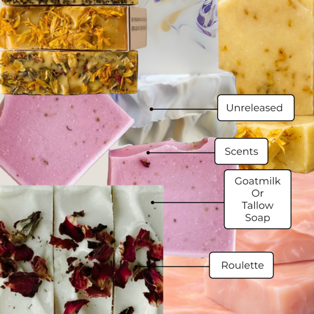 thoughtfully crafted in small batches and selected just for you. When you play Soap roulette you can get a chance to receive either a GoatMilk or tallow soap bar, always made with rich, nourishing ingredients designed to gently cleanse while deeply moisturizing, honoring the timeless tradition of simple, wholesome skincare.